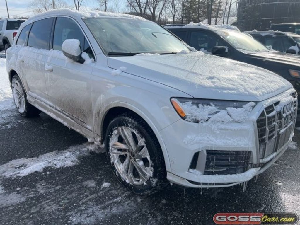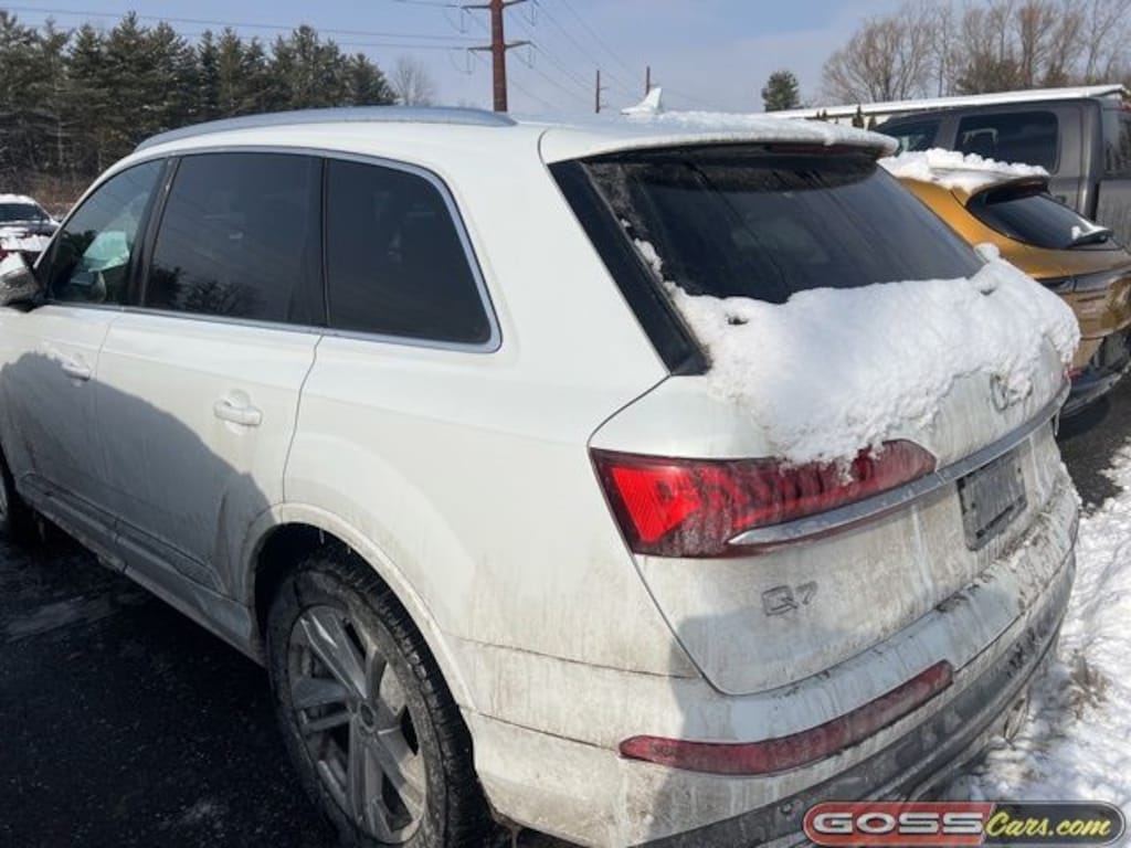 2021 Audi Q7 45 Premium Plus Quattro, Quattro, 8-Speed Automatic with Tiptronic, 2.0L 4-Cylinder TFSI, Glacier White, Certified 3/3 or Remainder of Factory Warranty Inspection, LEATHER SEATS, NAVIGATION, HEATED SEATS, BLIND SPOT DETECTION, SUN ROOF, 3-Spoke Multifunction Steering Wheel w/Paddles, 3rd row seats: bench, ABS brakes, Alloy wheels, Ambient Interior Lighting Package, Audi Phone Box w/Wireless Charging, Bang & Olufsen 3D Premium Sound System, Convenience Package, Electronic Stability Control, Exterior Parking Camera Rear, Front dual zone A/C, Heated Auto-Dimming Power Folding Exterior Mirrors, Heated Front Bucket Seats, Illuminated Door Sills, Leather Seating Surfaces, Navigation system: Audi MMI Navigation plus with Touch Response, Power driver seat, Power Liftgate, Power moonroof, Power passenger seat, Power windows, Premium Plus Package, Rear air conditioning, Remote keyless entry, Roof rack: rails only, Speed control, Steering wheel memory, Topview Camera System, Tow Hitch Receiver, Towing Package, Variably intermittent wipers.