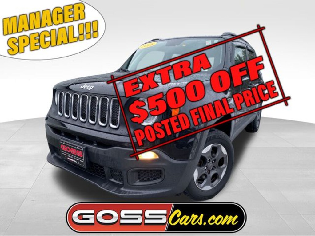 2018 Jeep Renegade Sport, 4WD, 9-Speed 948TE Automatic, 2.4L I4, Black, Certified 3/3 or Remainder of Factory Warranty Inspection, CLEAN CARFAX, 16" x 6.5" Aluminum Wheels, ABS brakes, Air Conditioning, AM/FM radio, Cloth Low-Back Bucket Seats, Electronic Stability Control, ParkView Rear Back-Up Camera, Power & Air Group, Power Heated Mirrors, Power windows, Radio: Uconnect 3 w/5" Display, Rear window defroster, Remote keyless entry, Speed Control, Sport Appearance Group, Steering wheel mounted audio controls.